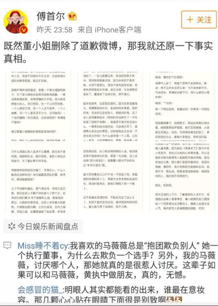 直到今天,董婧删除道歉,傅首尔才站出来为自己主持正义。