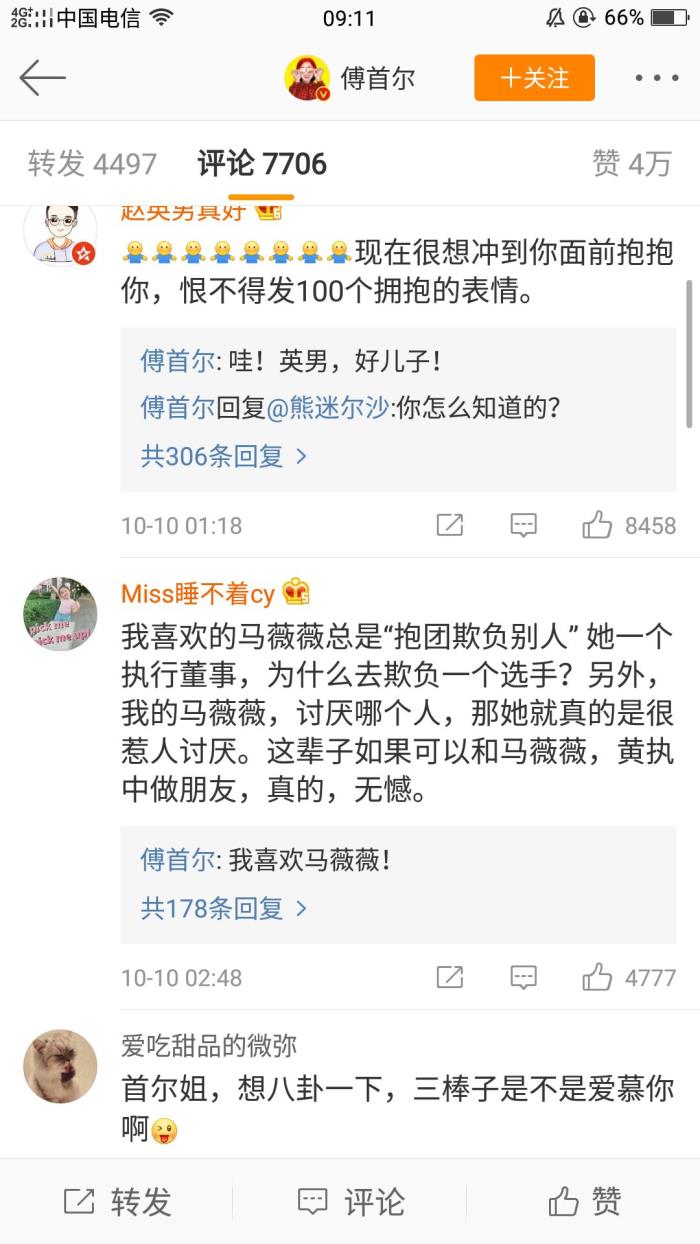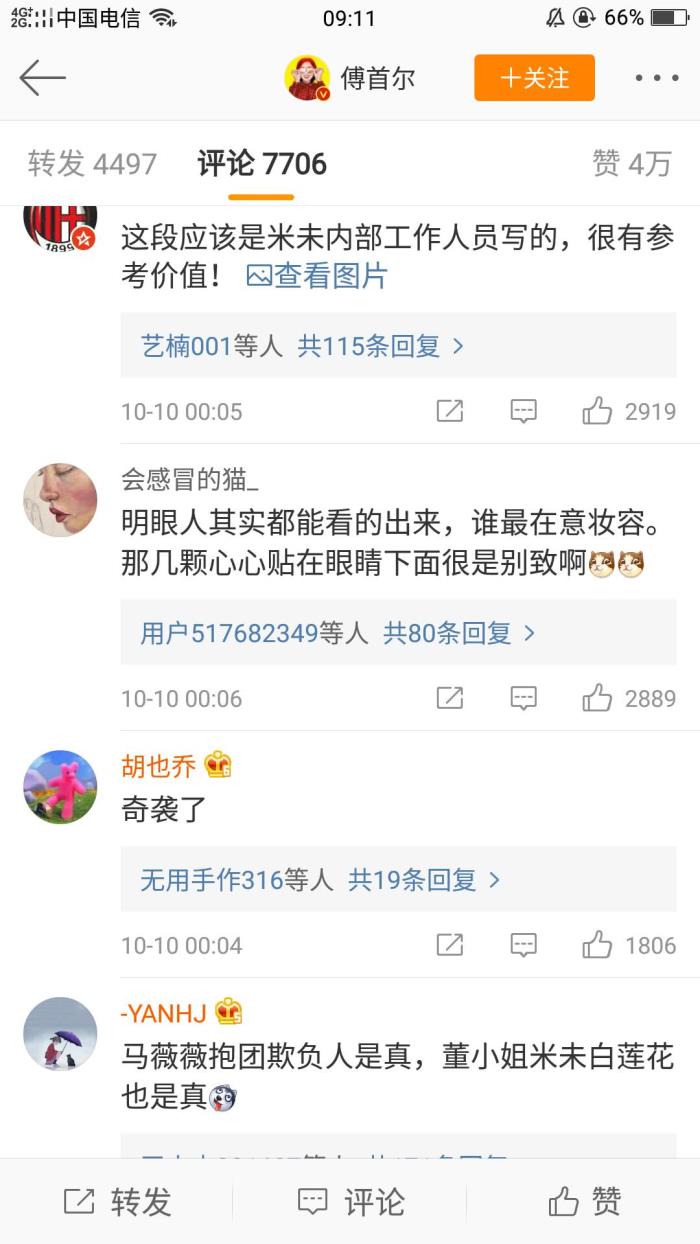 看得出来傅首尔下面的评论都很好,很支持傅首尔,奇葩说为了节目也是息事宁人,董婧的心机真是小说中那种楚楚可怜白莲花,傅首尔也直指董婧就是米末莲花婊,表面一套背地里欺压比自己后辈的人。