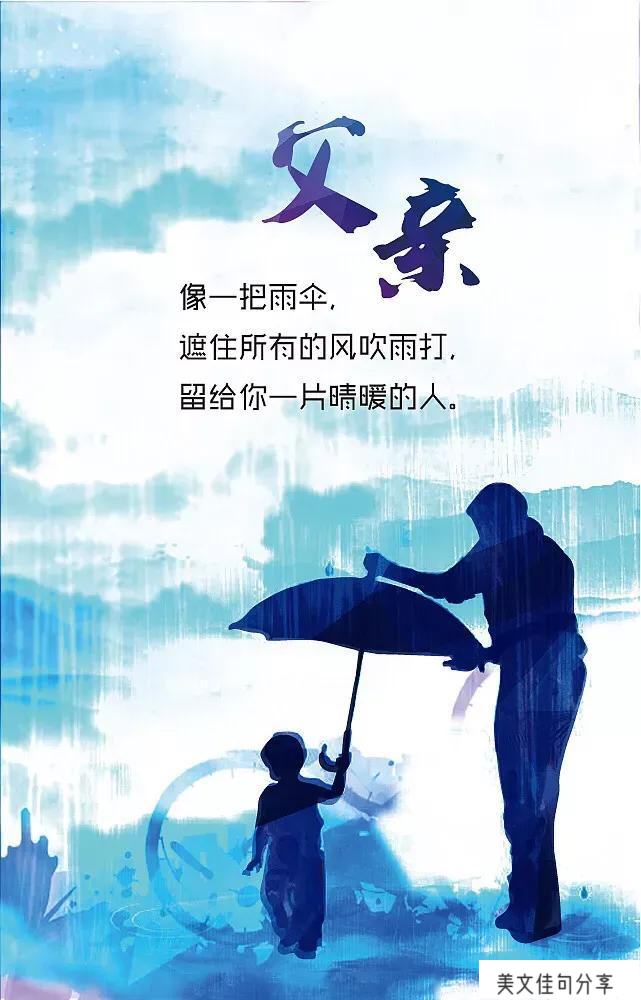 如果有来生,愿下一世我们还能相见,您还做我的爸爸,看着我成长,别再这么早把我抛下。天上星星亮起,是思恋的人在为你照明前方的道路。以前害怕山上的坟地里有鬼,可是,现在我不怕了,因为我最想念,最爱的人和最爱我的人躺在那里”。再也没有一个人,拿着烟,在门口等着我回来了。您去世好17年了, 我看着天上的星星 总相信姐姐和弟弟说最亮的一颗就是爸爸。 父亲其实很温柔,是奶奶眼里长不大的孩子。我曾被爸爸高高举过头顶所以我以后不能向任何人低头也不能比别人差. 以前总是觉得爸爸很古板直到有一天看见书上写了一句话, 中年男性时常会感到孤单因为当他们一睁开眼身边都是需要他依靠的人而没有他可以依靠的人…… 照顾我们五十三年的人我还没有说我爱你你也还没有说我也爱你你却已经不在了,我的避风港永远地变成我的回忆了…… 我的父亲说着最难听的话,却做着最暖心的事 ,长大后才知道,能遮风挡雨的不止房子,还有父亲……你不在,我独自逆流而上,唯有月如水时,唯有风乍起时,唯有天欲雪时,我才会在人潮人海中,忽然想起,世界上最疼爱我的那个人,已经去了比远方更远的地方。父亲是您给我们的坚强的后盾,给我们力量,给我们战胜困难的勇气,让我们勇往直前。