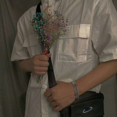 拿着花的冷酷男生头像 手捧满天星的图片男生