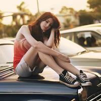 坐在车里侧面女生头像 女生在车上的图片